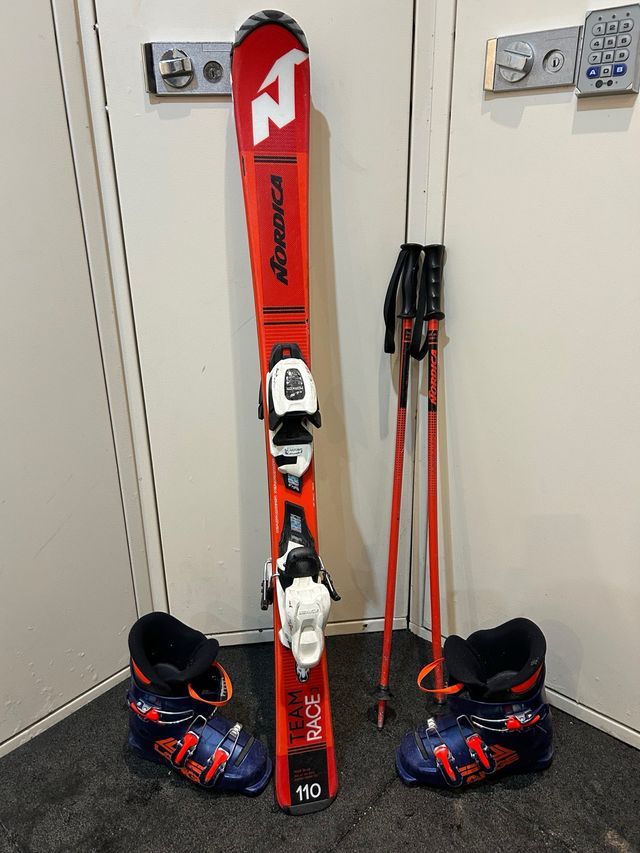 Sci, scarponi e bastoncini per bambini di 5-8 anni, scarponi da 32 cm.