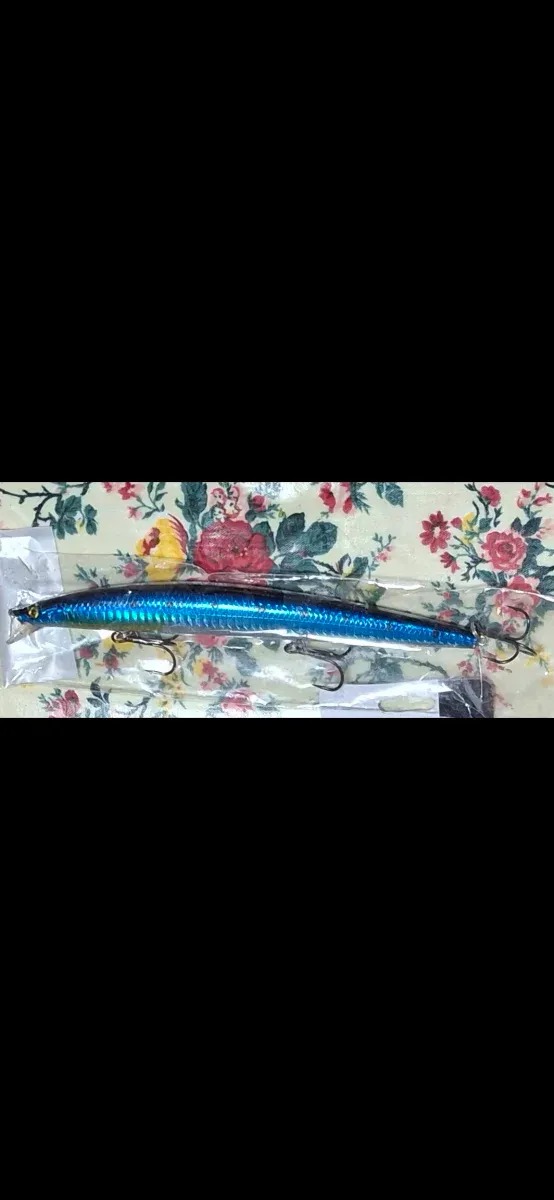 Esca da pesca di colore blu, lunga 18cm. - Design realistico per attirare i pesci. - Dotata di ami robusti.