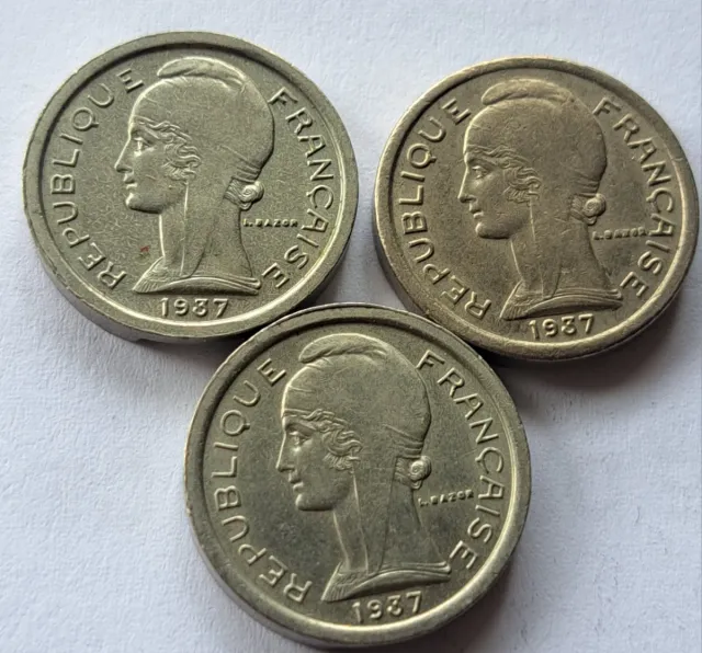 Dettagli del prodottoSet di tre monete telefoniche. - Design di Marianne. - Iscrizione République Française. - Anno: 1937. La descrizione è stata tradotta automaticamente.