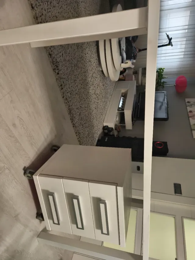 Scrivania bianca 1,35 x 0,54 m con cassettiera bianca