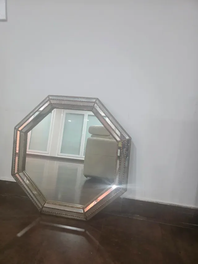 Specchio ottagonale con cornice decorata di piccoli specchi