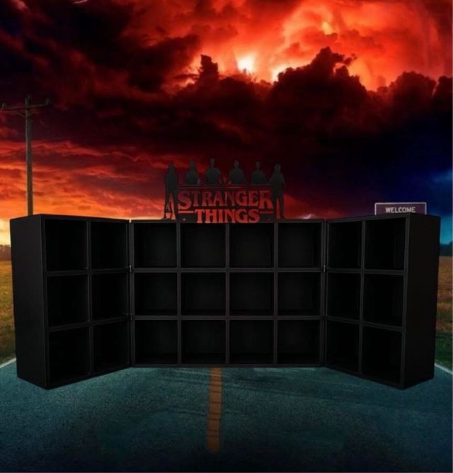 Espositore a tema Stranger Things, perfetto per collezionisti o fan della serie.