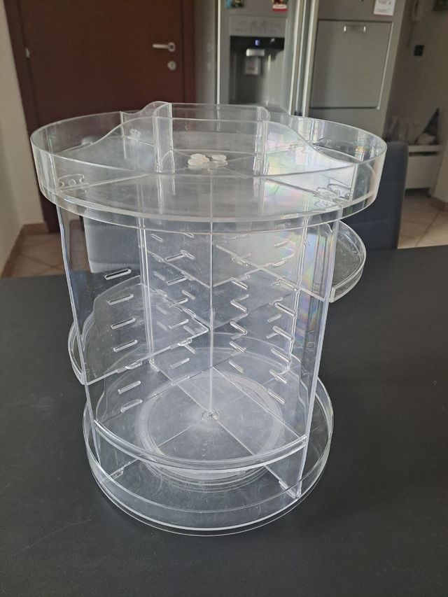 Dettagli del prodottoBellissimo espositore/organizzatore per gioielli,trucchi,accessori o altro. Utilissimo in negozio, casa, bagno. Ruota su se stesso, tanti vani e tanti spazi da poter utilizzare. i vani intermedi sono interscambiabili! materiale di plastica molto resistente di alta qualità, è stato utilizzato ma è in ottime condizioni.