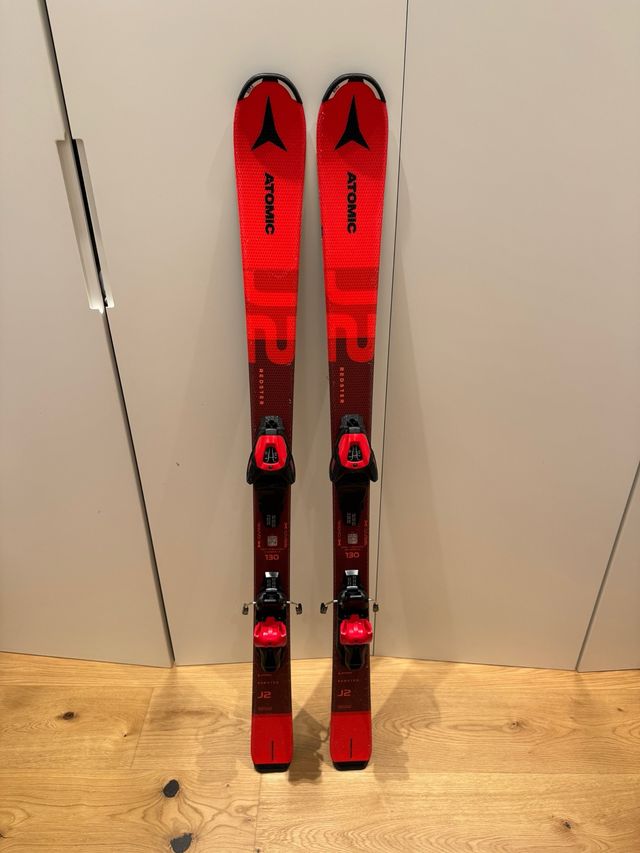 Esquís Atomic Redster J2 de 130 cm. Diseñados para niños / jóvenes esquiadores. No se envia. Entrega en mano. - Color rojo vibrante. - Fijaciones incluidas.