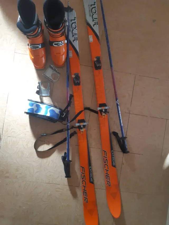 Dettagli del prodottoAttrezzatura completa da sci da montagna Fischer. - Scarponi Scarpa taglia 9.5 - Sci Fischer Tour Extreme. - Lame/cramponi da sci - Pelli di foca su misura - Bastoni da sci. - Attacchi. Si vende solo il pacchetto completo. I lati e la suola sono stati ritoccati di recente. Viene con una custodia in tessuto (fatta a mano, è vecchia ma funziona) per trasportare gli sci e i bastoncini. Se hai domande, non esitare a scrivermi! La descrizione è stata tradotta automaticamente.