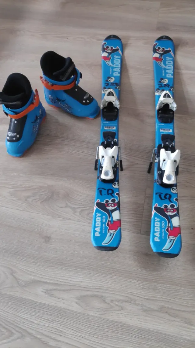 Dettagli del prodottoSet di sci e scarponi per bambini. - Sci PADDY con design divertente. - Scarponi da sci per bambini. La descrizione è stata tradotta automaticamente.