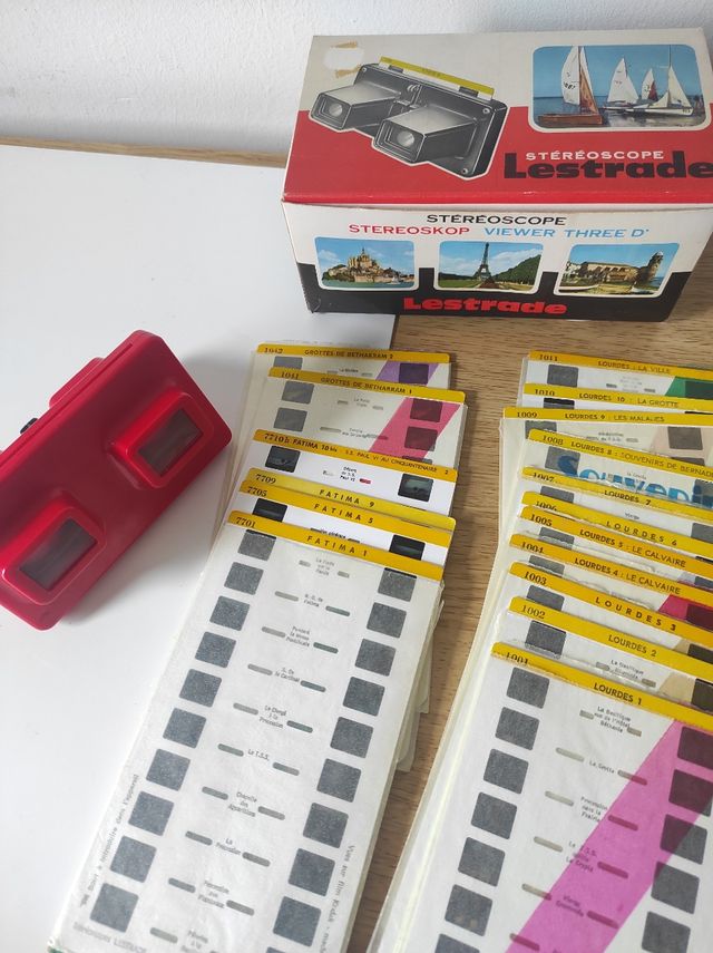 Steroscopio come nuovo, nella sua scatola originale con molte piastre