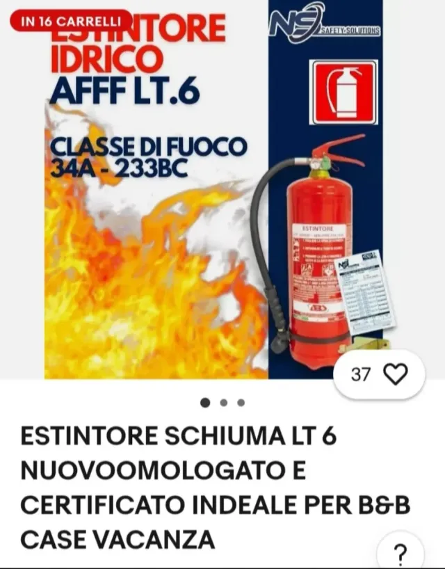 Estintore idrico AFFF da 6 litri, classe di fuoco 34A - 233BC. - Omologato e certificato. - Ideale per B&B e case vacanza.