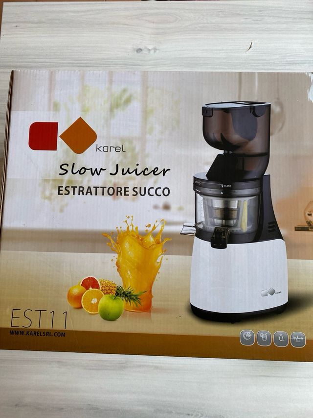 Dettagli del prodottoEstrattore succo da ristorazione, Slow Juicer Karel, modello EST 11, colore bianco, potenza 150 w, nella sua confezione originale, mai utilizzato né tirato fuori dalla scatola.