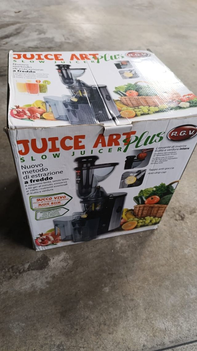 Dettagli del prodottoVendo estrattore Juice Art Plus per inutilizzo. Usato tre volte, come nuovo. Potenza 150W silenzioso con ventose per fissaggio, libretto istruzioni, confezione originale