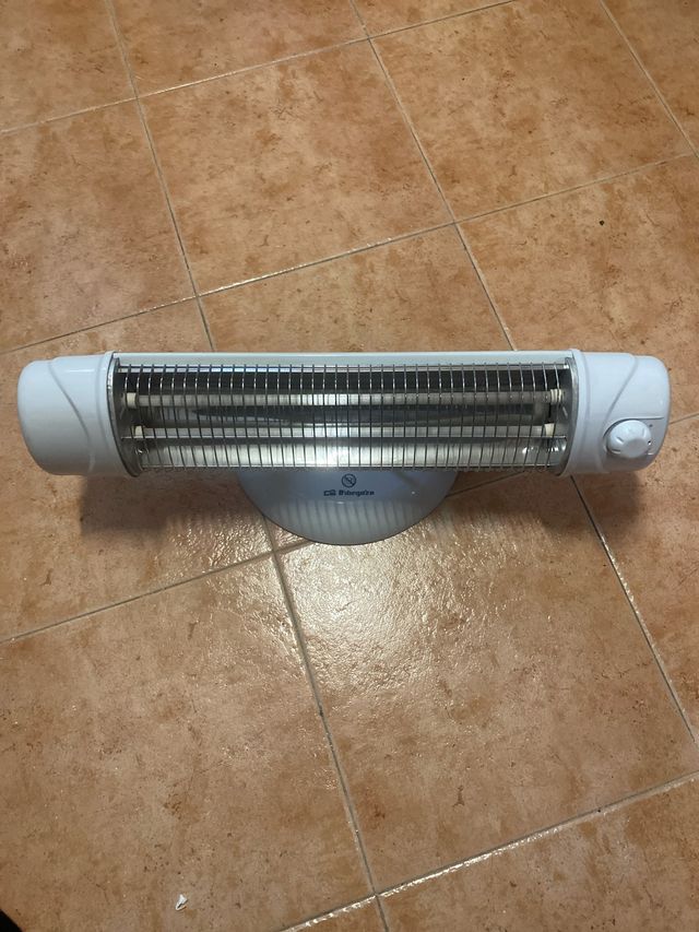 Stufa al quarzo con due resistenze. - Colore bianco - Base circolare - Griglia protettiva
