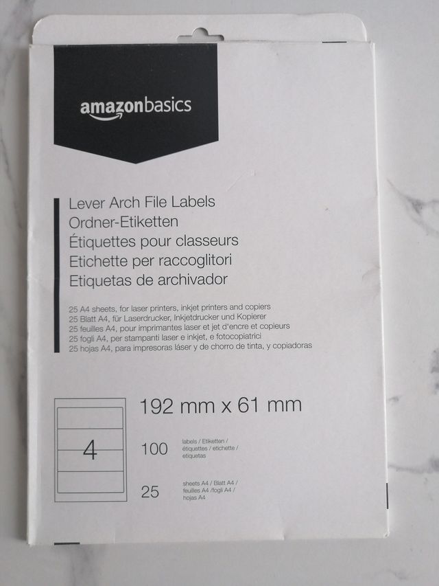 Amazon Basics Etichette per Raccoglitori Adesive Bianche A4-192 x 61