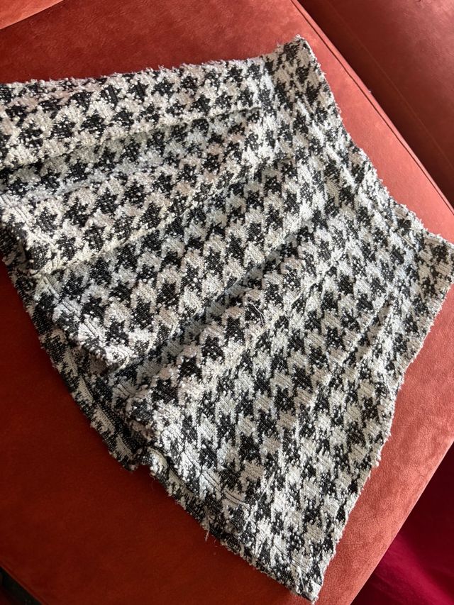 Gonna in tessuto con stampa a scacchiera in bianco e nero. Design classico. Tessuto texturizzato.