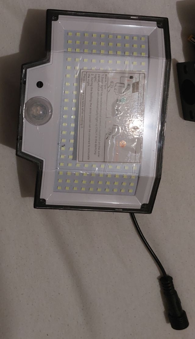 Dettagli del prodottofaro da 200 led molto luminoso, pannello di ricarica con 5 metri di cavi.