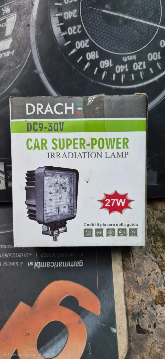 Faretto da lavoro a LED marca DRACH. - Modello: DC9-30V - Potenza: 27W - Ideale per illuminazione aggiuntiva.