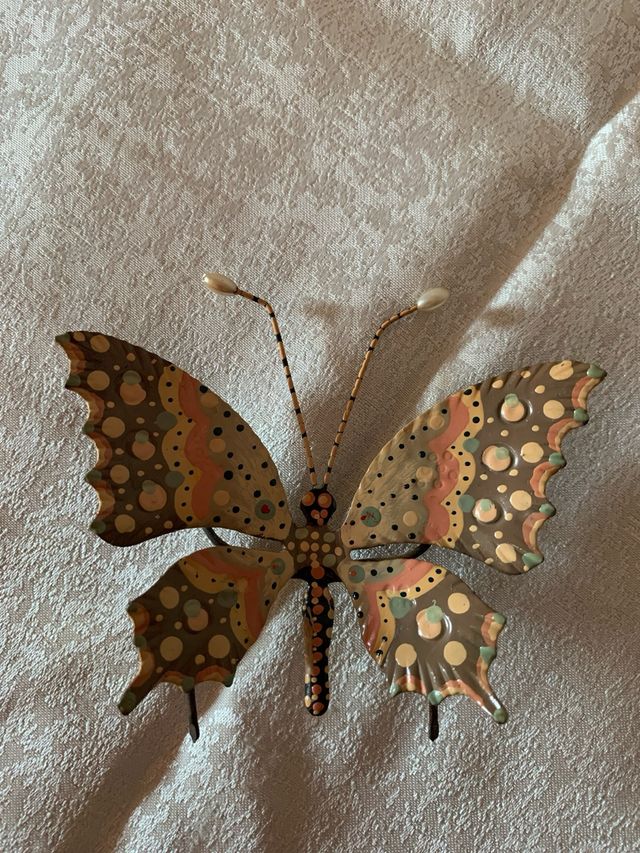 Dettagli del prodottoDeliziosa farfalla decorativa realizzata in metallo smaltato, perfetta per aggiungere un tocco di colore e originalità.