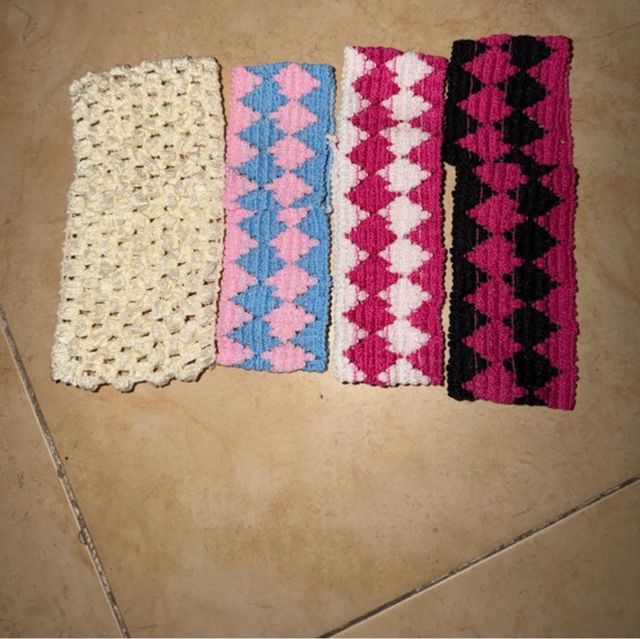 Dettagli del prodottoSet di quattro fasce realizzate a mano con diverse fantasie.