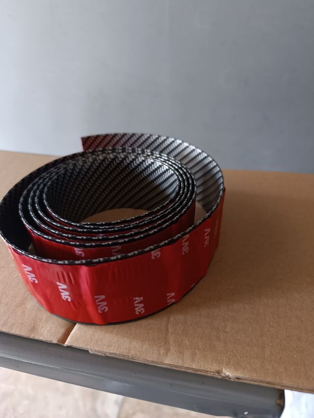 Striscia adesiva con finitura effetto carbonio 3D. - Finitura effetto carbonio. - Retro adesivo 3M. - Lunghezza 1, 70 mt. - Larghezza 5 mm. - Spessore 1,5 mm.