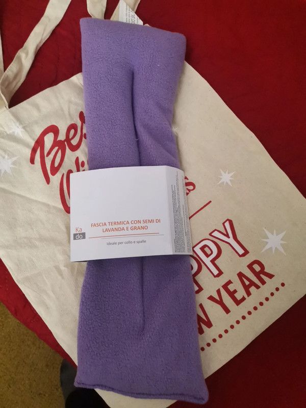 Fascia per collo e spalle con semi di lavanda e grano, corredata di sportina per confezione. Cm.44X14