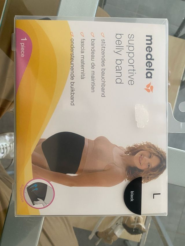 Fascia di supporto per maternità Medela, taglia L, colore nero. - Supporto addominale. - Tessuto traspirante. - Design ergonomico.