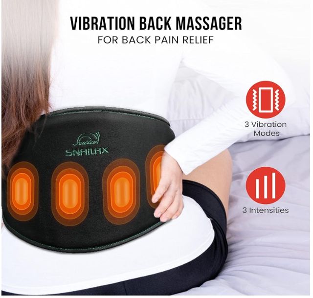 Dettagli del prodottoCuscino riscaldante portatile per mal di schiena, cintura massaggiante vibrante con cinghia regolabile e 3 modalità di vibrazione, massaggiatore lombare con calore e spegnimento automatico