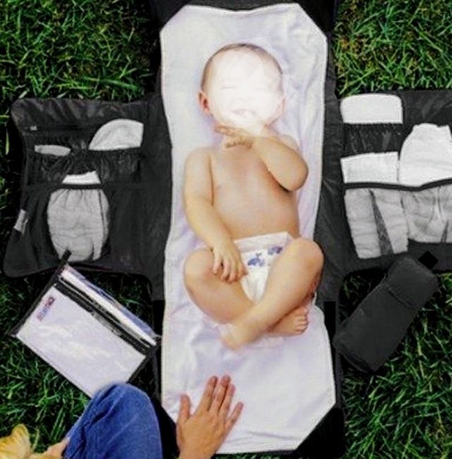 Fasciatoio da viaggio baby traveller de luxe , con molte tasche, può essere portato come zaino o a tracolla, lavabile in lavatrice , misure chiuso 38x40