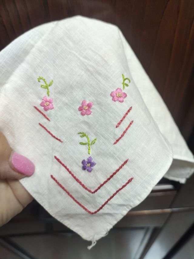 Fazzoletto ricamato a mano lino buono nuovo festa