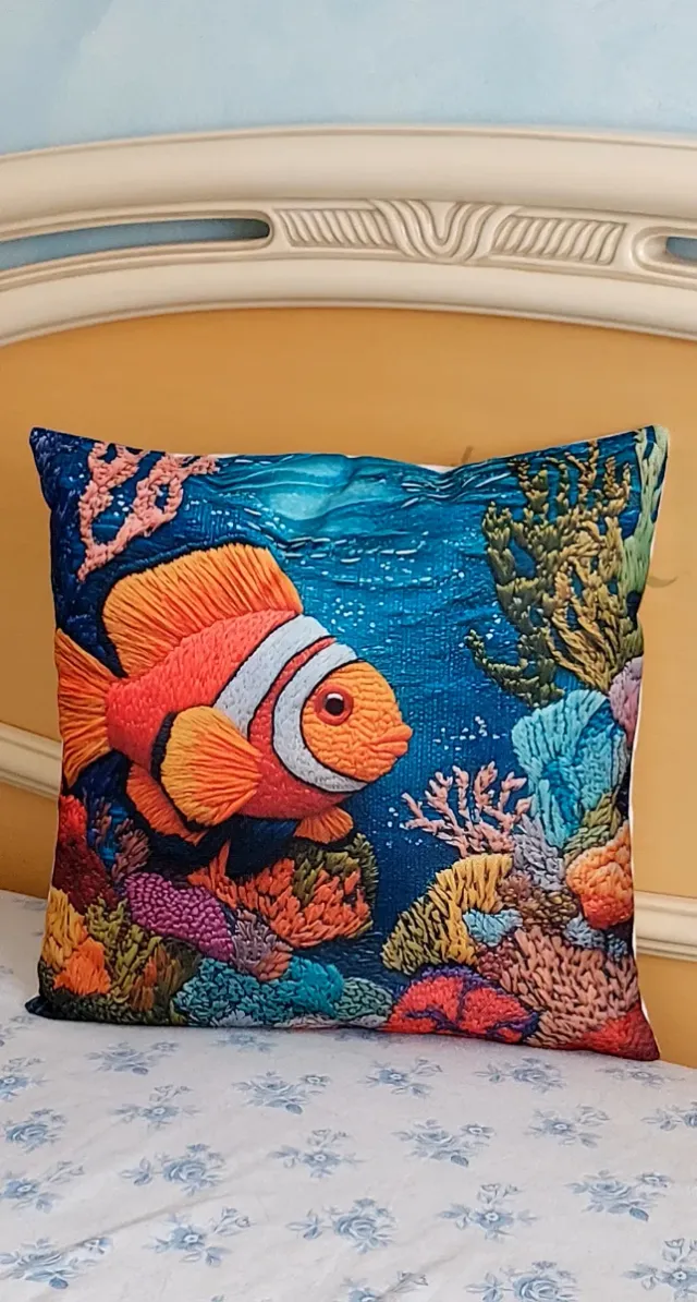 Federa cuscino stampa 2d pesce pagliaccio corallo