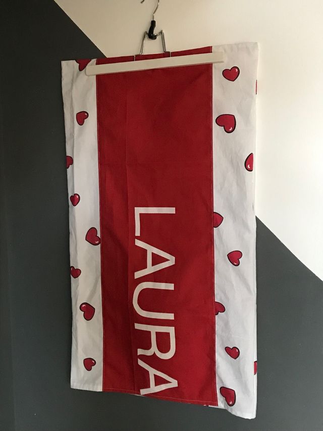 2 Federe per cuscino in puro cotone. Misure come IKEA. (1 con scritta Laura e una in tinta unita con cuori) Confezionate a mano dalla sottoscritta. Pezzi unici.
