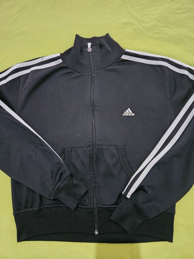 Vendo felpa Adidas per bambino, taglia S (8 o 10 anni). È una felpa con zip, nera con tre strisce bianche sui lati. - Ottime condizioni. - Colore nero. - Perfetta per la mezza stagione.