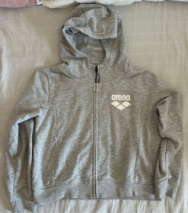 Felpa con cappuccio e zip di Arena, colore grigio. - Logo Arena sul petto. - Polsini e fondo a costine. - Tessuto confortevole.