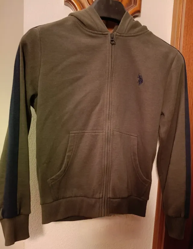 Dettagli del prodottoFelpa con cappuccio e zip, u.s. Polo ASSN, perfetta per i bambini.