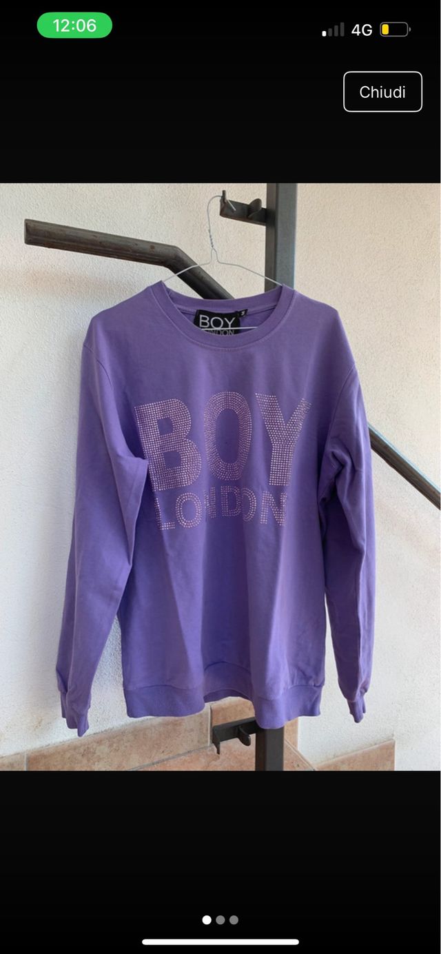 Felpa girocollo BOY London in un vivace color lilla. Il logo BOY LONDON sul davanti è impreziosito da strass scintillanti. Come nuova. Taglia M
