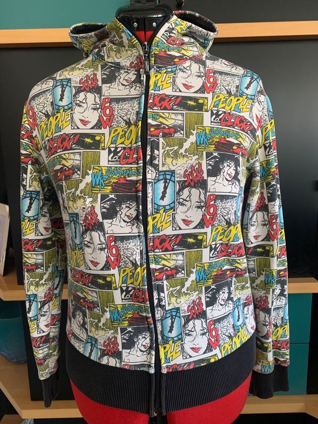 felpa unisex con cappuccio e cerniera. Fantasia fumetti. Made in Italy