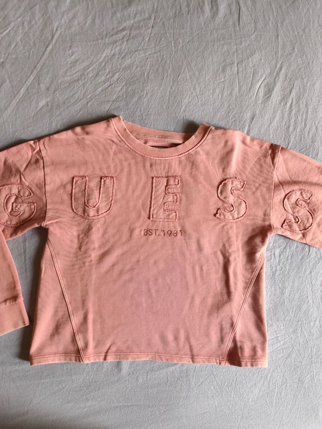Dettagli del prodottoFelpa rosa in cotone per bambina con logo Guess.