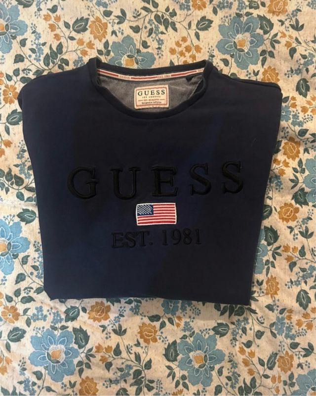 Felpa Guess blu con bandiera USA