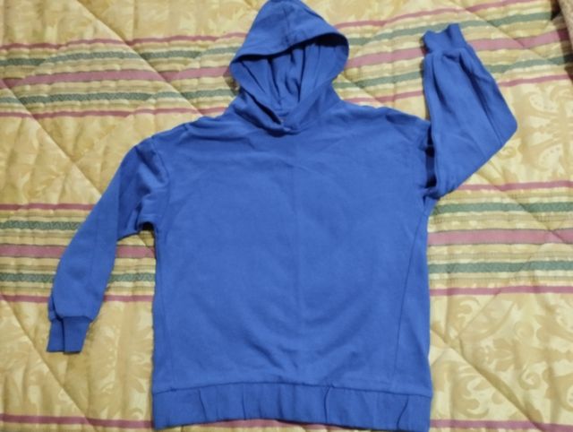 Nuovissima e praticissima felpa con cappuccio, azzurro unica tinta.Misura 11/12 anni.