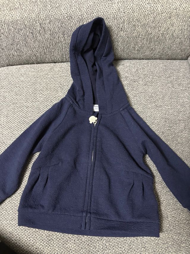 Morbida felpa per neonata con cappuccio e zip frontale. Presenta due tasche applicate sul davanti. - Colore blu scuro. - Tessuto testurizzato. Taglia 3-6 mesi