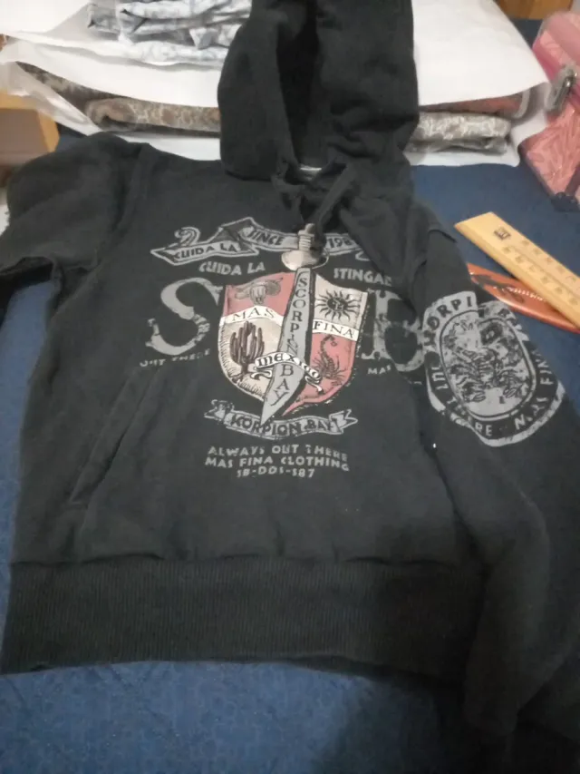 Dettagli del prodottoFelpa con cappuccio nera per bambino, con stampa grafica sul davanti.