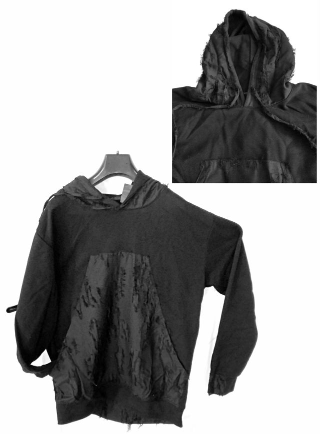 Dettagli del prodottoFelpa oversize nera con Inserti in tessuto crepé su tasca frontale e cappuccio Tg. XXL