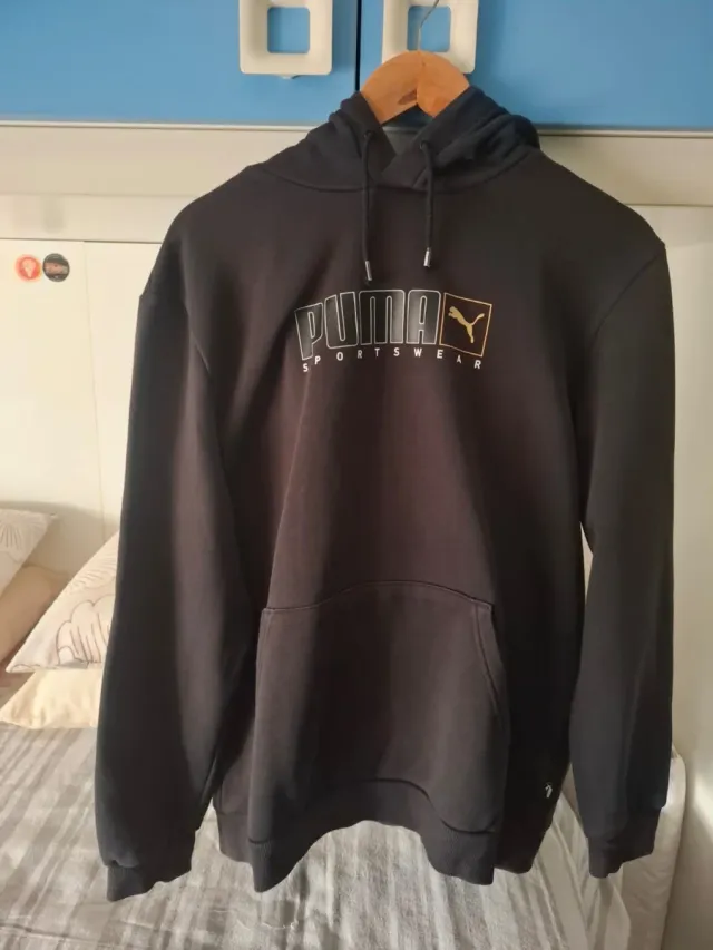 Felpa Puma nera con logo oro