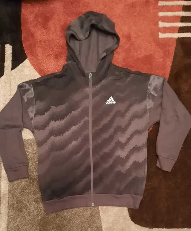 Dettagli del prodottoFelpa con cappuccio Adidas per ragazzo, con una fantasia a onde sfumate.