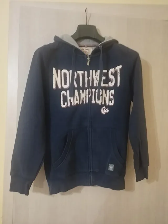 Dettagli del prodottoFelpa con cappuccio e zip per ragazzo, taglia S. Presenta una stampa Northwest Champions sul davanti.