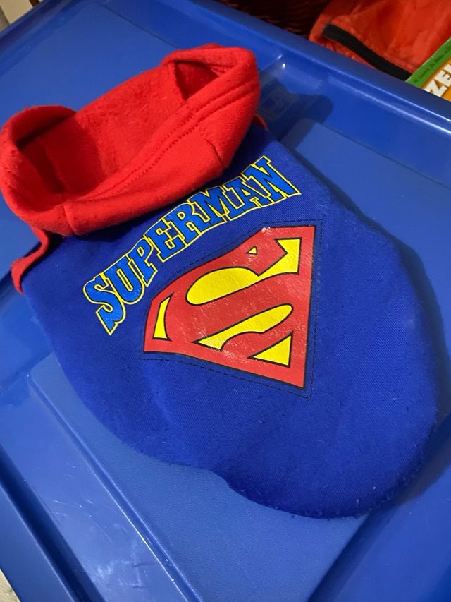 felpa con csppuccio prr prlodo taglia picvola L in pile con stsmpa suoerman , cappucvio e anbittonata davanti