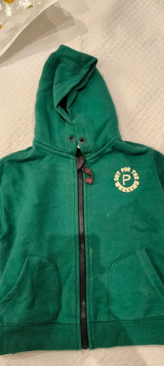 Dettagli del prodottoFelpa con cappuccio per bambino, colore verde. Presenta una stampa sul petto.