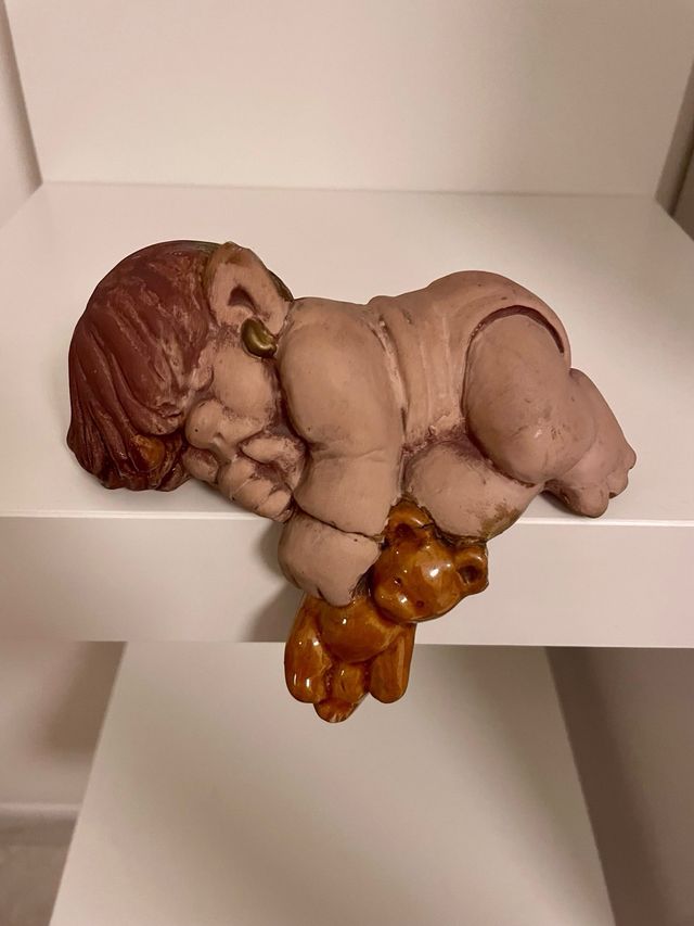 Ferma carte troll con orsacchiotto in ceramica, design unico.