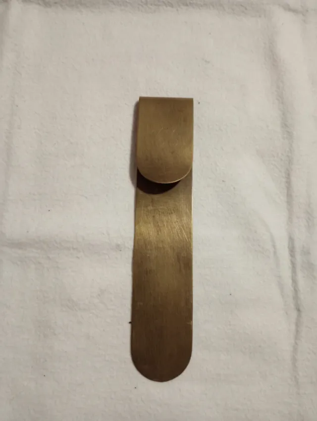 Elegante fermacarte in ottone, dal design vintage. Lungo 15 cm, largo 3 cm. - Materiale: Ottone - Finitura: Spazzolata