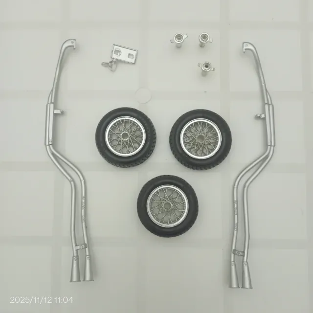 - Componenti inclusi: due collettori di scarico, tre ruote con cerchi a raggi e piccoli accessori metallici.