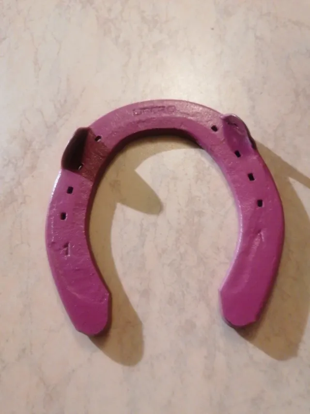 Ferro di cavallo dipinto di viola, ideale come oggetto decorativo o portafortuna. - Colore: Viola - Materiale: Metallo