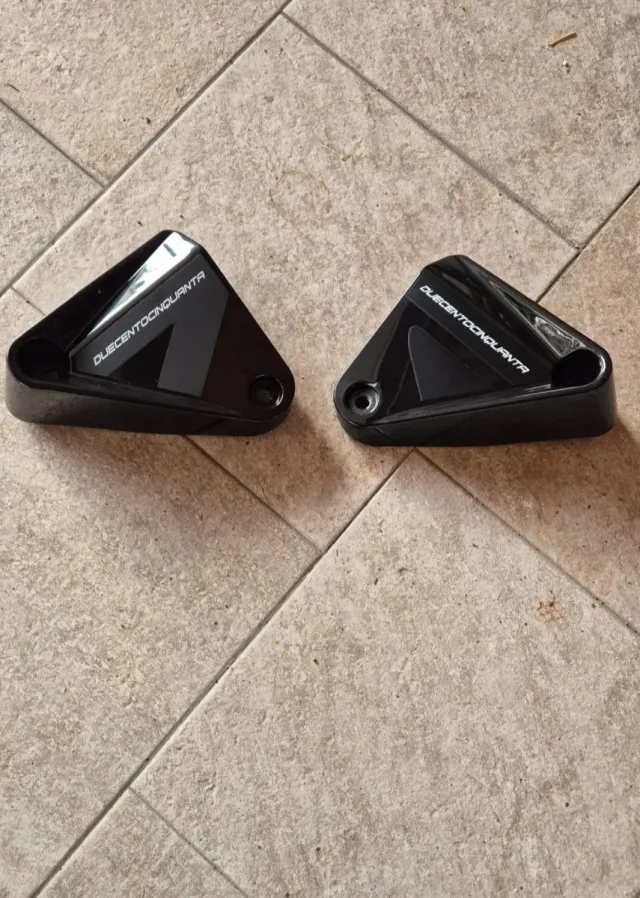 Coppia di fianchetti laterali neri per Benelli Leoncino 250. - Design sportivo e rifiniture lucide. - Logo DUECENTOCINQUANTA inciso.